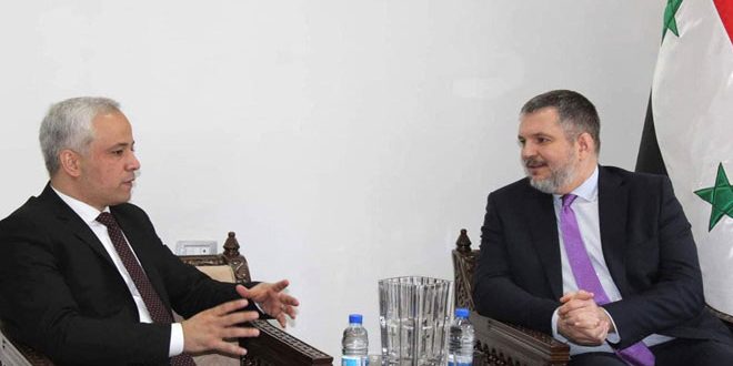 بحث وزير الاتصالات والتقانة المهندس إياد الخطيب مع مساعد وزير الخارجية الصربي فلاديمير ماريتش والوفد المرافق له آليات تبادل الخبرات في مجالات تقانة الاتصالات والتحول الرقمي بين البلدين.