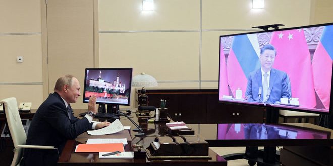 وقال بوتين في مستهل اجتماع قمة افتراضي عبر تقنية الفيديو مع نظيره الصيني شي جين بينغ اليوم إن العلاقات الروسية الصينية تتميز بالرغبة في جعل الحدود المشتركة حزاماً للسلام الدائم وحسن الجوار.