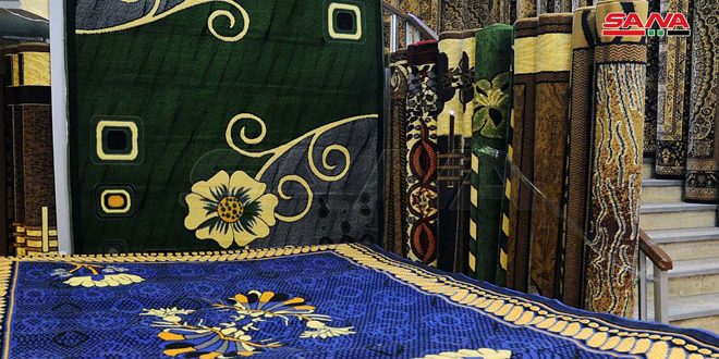 وأشارت إلى أن معرض السجاد يستمر طوال فصل الشتاء ويتم بشكل دوري ترميم النقص في المواد حرصاً على تأمين كل الاحتياجات وتحقيق التنافسية والتدخل الإيجابي في السوق لافتة إلى وجود تشكيلة واسعة وبأسعار تنافسية مقارنة مع مثيلاتها في الأسواق وخاصة السجاد الصوفي من إنتاج القطاع العام في السويداء ودمشق والذي يباع بسعر 55 ألف ليرة للمتر الواحد كما يتوفر أنواع أخرى كالاكرليك والبوليستر والموكيت وبأسعار تتراوح بين 15 ألفاً و 70 ألفاً للمتر.