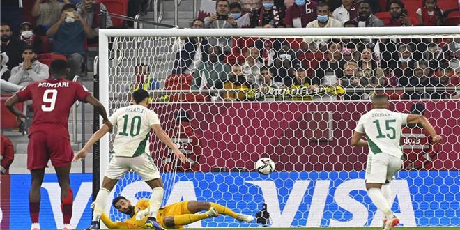 فاز المنتخب الجزائري على نظيره القطري بنتيجة 2-1 في المباراة التي أقيمت بينهما اليوم على استاد الثمامة القطري في الدور قبل النهائي لبطولة كأس العرب.