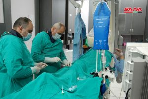 وأكد أن المركز عبر التقنيات الحديثة التي يضمها وخبرة كوادره الطبية يجري عدة عمليات نوعية كالتداخلات على الجزع الاكليلي الأيسر وعلى الشرايين الدماغية التي رفعت من مستوى الخدمات الصحية المقدمة في المنطقة الوسطى عامة وحمص خاصة رغم ظروف الحصار الاقتصادي مشيراً إلى أن أكثر الحالات التي يتم استقبالها هي القثطرة الاكليلية والحالات الحادة فيها وإلى جهوزية المركز وكوادره على مدار الـ 24 ساعة لاستقبال جميع الحالات الإسعافية.