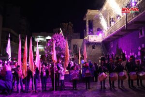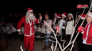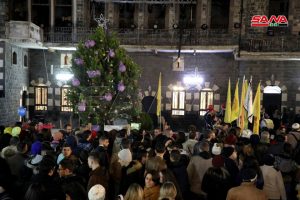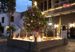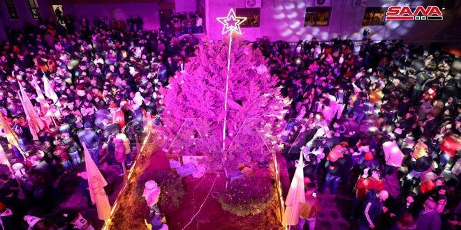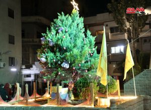 أضاءت الفعاليات الأهلية والشبابية مساء اليوم شجرة الميلاد بباحة كنيسة السيدة العذراء أم الزنار في حمص القديمة بمناسبة اقتراب أعياد الميلاد المجيدة.