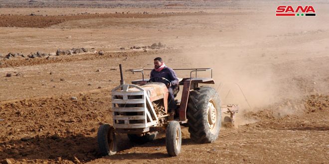 وأضاف إن وتيرة زراعة القمح البعل و المروي تشهد تسارعاً وبلغت المساحة المزروعة بالقمح البعل 19058 هكتاراً من أصل المساحة المخططة البالغة 80 ألف هكتار والقمح المروي 2138 هكتاراً من أصل المساحة المخططة البالغة 9257 هكتاراً.