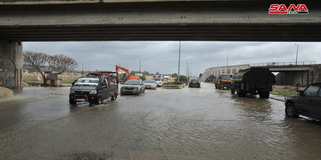 من جهته لفت مدير شركة الصرف الصحي المهندس سهيل شاهين إلى أن الأمطار الغزيرة تسببت بارتفاع منسوب المياه في المجاري المائية على طريق حلب القديم حيث تعمل الورشات على معالجة الاختناقات على الطريق.