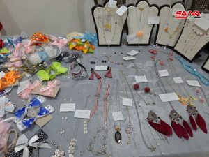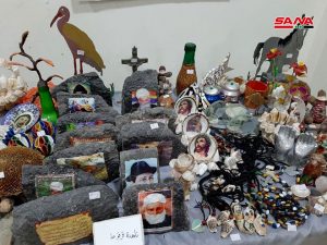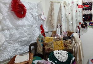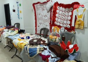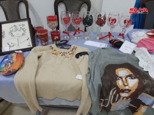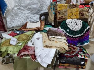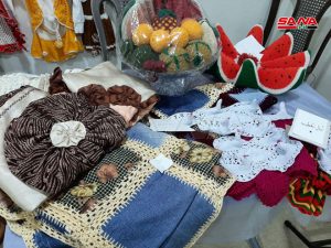مجموعة أعمال يدوية ترتبط بالتطريز والحياكة والصوف والتراث والنول والإكسسوار إضافة إلى تحف فنية ضمها معرض (عبق الماضي2) الذي أطلقته مبادرة محبة ووفا بالسويداء اليوم في صالة مركز السلام للتنمية والتدريب.