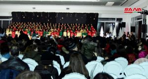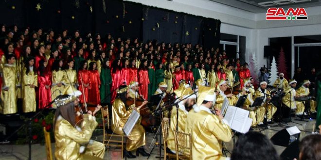 أحيت جوقة الفرح بقيادة المايسترو كلوديا توما وإشراف الأب إلياس زحلاوي مساء أمس ميلادية غنائية في صالة غاردن هول بمدينة طرطوس تضمنت العديد من الترانيم الميلادية.