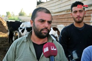 المربي محمد زرزور شأنه شأن الأخرين تعد تربية الأبقار أساس معيشته ولم تمنعه الظروف الصعبة من إعادة ترميم إعداد ابقاره حتى وصلت إلى 15 رأسا من البقر تنتج نحو 400 كيلو من الحليب يومياً مشيراً إلى أنه سيستمر في العمل لتحسين واقع التربية التي تواجه صعوبات كثيرة في ظل ارتفاع أسعار العلف وعدم توفير مستلزمات التربية.