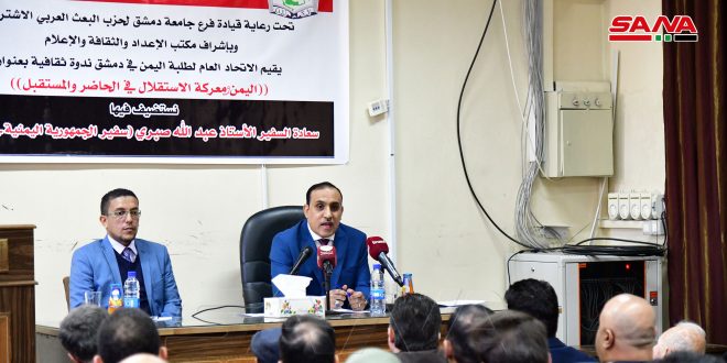 وأوضح صبري أن “المعاناة التي يعيشها الشعبان اليمني والسوري هي نتيجة التدخلات الخارجية ومحاولات تجزئة الأمة وتقسيمها تنفيذاً لمخططات المشروع الصهيوأمريكي في المنطقة التي يواجهها الشعبان بالرفض والمقاومة”.