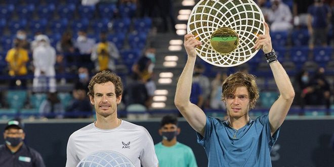 توج الروسي أندريه روبليف بلقب بطولة مبادلة الاستعراضية بكرة المضرب التي استضافتها أبو ظبي الإماراتية بفوزه اليوم في المباراة النهائية على البريطاني آندي موراي بمجموعتين دون مقابل.