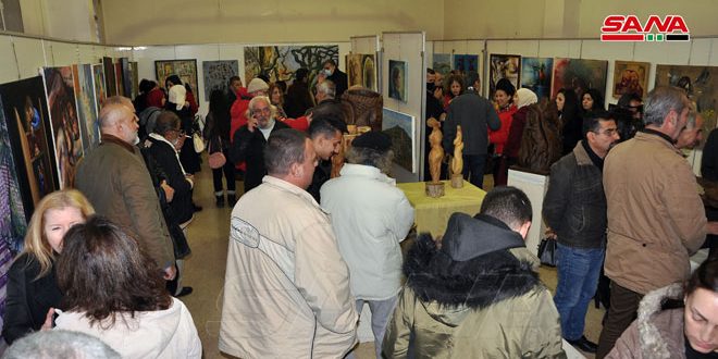 المعرض الذي يقام بالتعاون مع مديرية ثقافة اللاذقية حفل بمشاركة 55 فناناً قدموا 62 عملاً متنوعاً بين التصوير والنحت والحفر مع تعدد التقنيات بين الزيتي والإكريليك والمائي والباستيل في حين شكلت مادتا الخشب والحجر المادتين الأساسيتين في الأعمال النحتية.