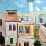 الفنانة التشكيلية لينا ديب شاركت بعمل يصور لنساء متأملات ومترقبات بلباس تقليدي يحمل ألوان الطبيعة ونوهت بقدرة الفنان السوري على الاستمرار في عطائه رغم كل الصعوبات والتواجد على الساحة الفنية التشكيلية السورية والعالمية.