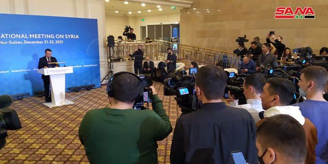 وأدانت الدول الضامنة “روسيا وإيران وتركيا” في البيان الختامي للاجتماع الدولي السابع عشر بصيغة أستانا الذي عقد في العاصمة الكازاخية نورسلطان على مدار يومين العمليات الإرهابية في سورية التي تستهدف المدنيين الأبرياء والمنشآت المدنية وشددت على مواصلة التعاون من أجل القضاء بشكل نهائي على تنظيمي “داعش” وجبهة النصرة الإرهابيين وجميع الأفراد والجماعات والكيانات المرتبطة بتنظيم القاعدة الإرهابي والمدرجة على قوائم مجلس الأمن الدولي للتنظيمات الإرهابية.