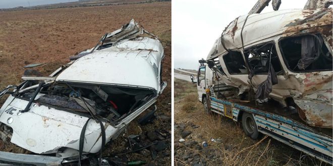 وأوضح مدير منطقة شهبا العقيد صالح احمد في تصريح لمراسل سانا أن ميكروباص “سرفيس” يعمل على خط السويداء دمشق انفجرت عجلته الخلفية اليسارية أثناء توجهه إلى دمشق صباح اليوم ما أدى إلى تدهوره وانقلابه خارج الطريق.