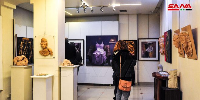 المعرض الذي احتضنته صالة عشتار ضمن فعاليات احتفالية أيام الفن التشكيلي السوري ضم 40 عملاً منها 25 منحوتة للفنانة رانيا من مراحل مختلفة من تجربتها وجاءت المجموعة الأكبر منها تحت عنوان “تدمريات” وهي عبارة عن بورتريهات لنساء من تدمر مع حليهن ونظراتهن المطلة علينا عبر الزمن.