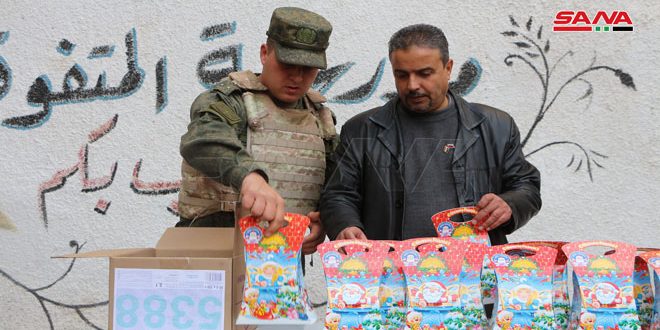 وأوضحت مدرسة اللغة الروسية في مدرسة الشهيد اسماعيل أبو نبوت يارا محمود أن الهدايا تأتي بمناسبة أعياد الميلاد مشيرة إلى تقديم الطالبات الدارسات للغة الروسية في مدارس درعا فقرات فنية وشعرية باللغة الروسية أكدن من خلالها عمق علاقات الصداقة السورية الروسية.