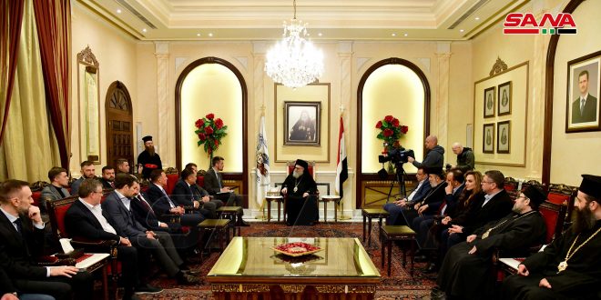 ولفت البطريرك يوحنا العاشر إلى أهمية تعزيز العلاقات القائمة بين البلدين والشعبين الصديقين داعياً الجمعية البرلمانية الدولية الأرثوذكسية لعقد اجتماعها المقبل بدمشق مثمناً ما قدمته الجمعية والأصدقاء الروس من دعم لأبناء الشعب السوري.