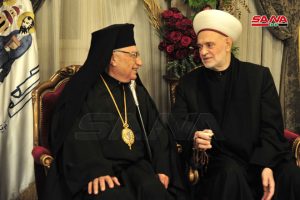 بدوره أكد بطريرك انطاكية وسائر المشرق للروم الأرثوذكس يوحنا العاشر أن أبناء سورية كانوا وما زالوا يعيشون أخوة إيمانية مسيحيين ومسلمين في وئام ومحبة ولم تستطع قوى التكفير والتطرف أن تفرق بينهم.