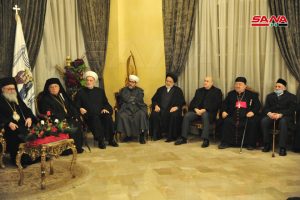 ولفت السيد إلى أن مسيحيي سورية هم من احتضنوا الإسلام عند وصوله إلى سورية ومنها انطلق ليعم نوره العالم كما عم نور المسيحية المنطلق من سورية أرجاء العالم قبل ذلك موضحاً أن الكاتدرائية المريمية تحوي نسخة العهدة العمرية كما يضم الجامع الأموي مقام نبي الله يحيى “يوحنا المعمدان” في المسيحية.