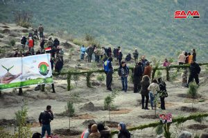 أقيمت اليوم بمناسبة عيد الشجرة السبعين حملة تشجير واسعة في منطقة أم الطيور باللاذقية بمشاركة مديرية الزراعة وعدد من الفعاليات الأهلية.