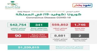 وحسب إحصائية رسمية سجلت السعودية أمس حالتي وفاة و1746 إصابة بفيروس كورونا.