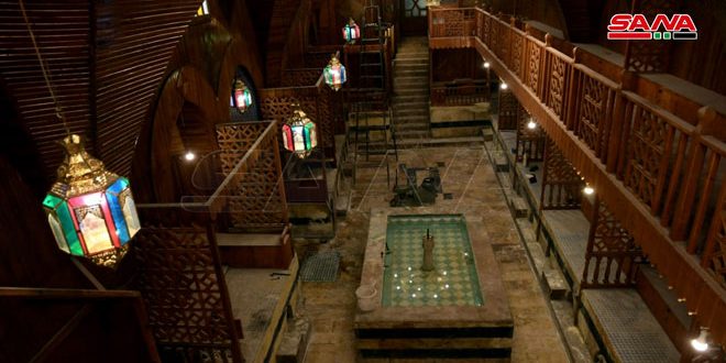 وبين قطان لـ سانا أن الحمام تاريخياً كان يتوزع على جزأين الأول ويقال له حمام الست وكان مخصصاً للسيدات والثاني حمام النحاسين ومخصص للرجال لافتاً إلى أن الحمام يتألف من أقسام البراني والوسطاني والجواني حيث يتم استقبال الزائر في القسم البراني ويقوم باستبدال ثيابه ويدخل إلى القسم الوسطاني ومن يتحمل حرارة أكثر يدخل إلى القسم الجواني وفيه بيت النار والبخار الكثيف حيث يستفيد منه بعض الاشخاص بالاستلقاء للتخلص من آلام الظهر.