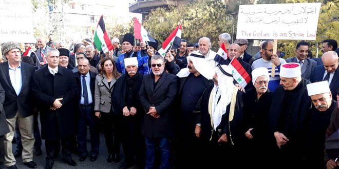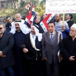 رفضاً لغطرسة كيان الاحتلال الصهيوني ورداً على ممارساته وقراره التوسع في إقامة مستوطنات جديدة في الجولان نفذ عدد من أبناء الجولان السوري المحتل اعتصاماً أمام مفوضية بعثة اللجنة الدولية للصليب الأحمر بدمشق.