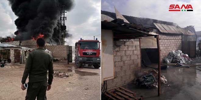 وفي تصريح لـ سانا بين قائد فوج إطفاء ريف دمشق العميد محمد الجردي أن الحريق نشب بمستودع مساحته 600 متر مربع ويحتوي على مواد بلاستيكية قابلة للاشتعال وأدى إلى انتشار كثيف للدخان بالمنطقة موضحاً أن ثلاث سيارات إطفاء توجهت فورا لمكان الحريق وتمت السيطرة عليه ثم إخماده بشكل كامل.