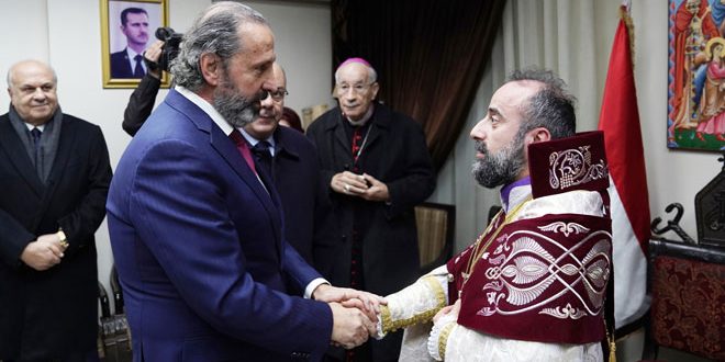 وقدم منصور عزام وزير شؤون رئاسة الجمهورية التهاني باسم الرئيس الأسد للمطران آرماش نالبنديان مطران الأرمن الأرثوذكس لأبرشية دمشق وتوابعها ومن خلاله إلى جميع أبناء الطائفة الكريمة.