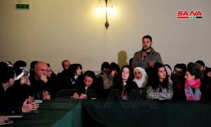 حضر الندوة وزير الإعلام الدكتور بطرس الحلاق ومعاون الوزير أحمد ضوا ورئيس الاتحاد الوطني لطلبة سورية دارين سليمان.
