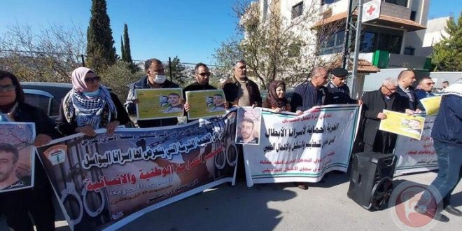 طالب عشرات الفلسطينيين خلال وقفة تضامنية في بيت لحم بالضفة الغربية اليوم المجتمع الدولي والمؤسسات الحقوقية والإنسانية بالتحرك العاجل لإنقاذ حياة الأسرى الفلسطينيين في معتقلات الاحتلال الإسرائيلي.