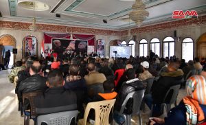 وعرض الأمين العام لجبهة النضال الشعبي الفلسطيني خالد عبد المجيد لمحة تاريخية عن المسيرة الطويلة للشهداء الأبرار في الأمتين العربية والإسلامية وما قدموه من تضحيات على طريق التحرير مؤكداً أن الدماء الطاهرة الزكية لهؤلاء الشهداء لن تذهب هدراً وسنبقى على نهجهم حتى النصر.