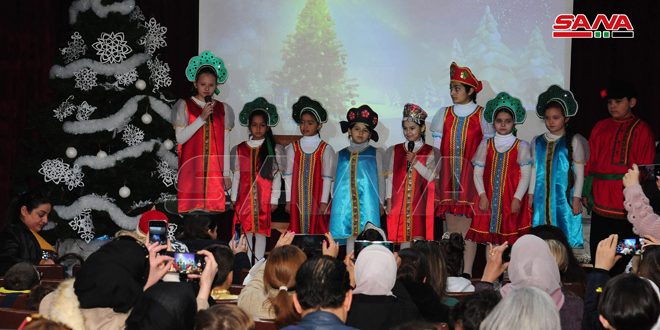 تآلفت أصوات وإبداعات أطفال سوريين وروس في الفعالية التي احتضنها المركز الثقافي العربي في أبو رمانة بمناسبة أعياد الميلاد ورأس السنة الميلادية على التقويم الشرقي.