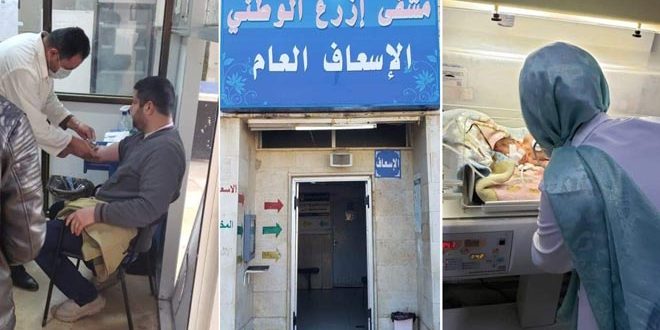 من جهة ثانية أشارت مديرة مشفى ازرع الدكتورة سهى قاسم في تصريح مماثل إلى أن المشفى الذي يغطي منطقة جغرافية واسعة من المحافظة يبذل كادره جهوداً كبيرة في مجال تقديم الخدمات للمرضى مبينة أن قسم العزل الطبي الذي يضم 14 سريراً و 12 منفسة يقدم خدمات كبيرة ويستهلك يومياً بحدود 50 اسطوانة اكسجين.
