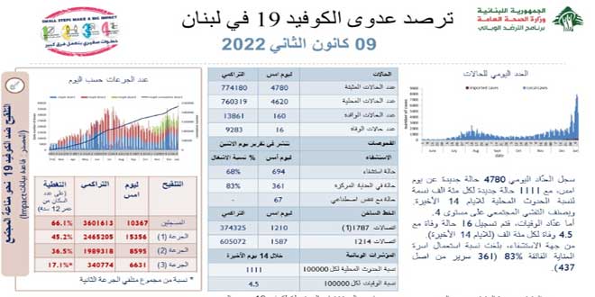 سجلت وزارة الصحة اللبنانية 16 حالة وفاة و4780 إصابة جديدة بفيروس كورونا خلال الساعات الأربع والعشرين الماضية.
