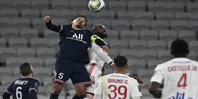 تعادل فريق باريس سان جيرمان أمام مضيفه أولمبيك ليون بهدف لكل منهما في المباراة التي جمعتهما ضمن منافسات الجولة الـ 20 من الدوري الفرنسي لكرة القدم.