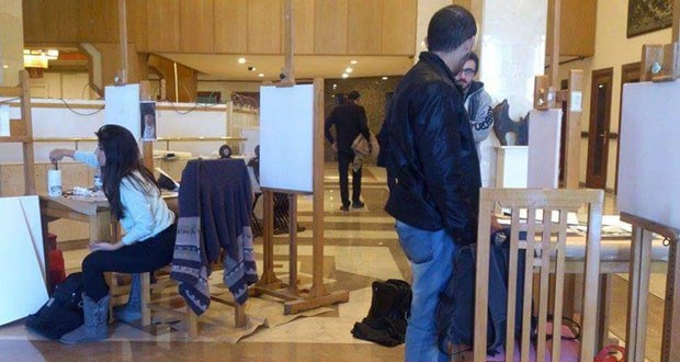 أما الفنانة الشابة علا احمد 21 عاما اختصاص اتصالات بصرية فاختارت رسم الفنانة وفاء موصللي والمخرج نجدة إسماعيل انزور كتقدير وشكر منها لعطائهما الفني للوطن واستمرارهما بالعمل داخل سورية رغم كل الصعوبات والعقبات وقالت إن أهمية هذه الورشة تكمن بما سنقوم به من عمل فني يلخص قدراتنا الفنية وما تعلمناه خلال دراستنا لكونها أول مشاركة لي بورشات العمل والمعارض.