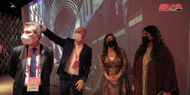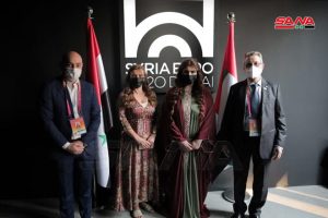أعرب وفد إماراتي برئاسة الشيخة مهرة بنت محمد بن راشد آل مكتوم عن إعجابها بمقتنيات الجناح السوري المشارك بمعرض إكسبو 2020 دبي وتميز معروضاته.