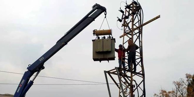 وبين المهندس صالح عمران مدير شركة كهرباء حمص لـ سانا أن الورشات التابعة للشركة أعادت تأهيل مركز تحويل تير معلة الجنوبي 630 وتبديل محولة 100 ك.ف.ا معطوبة في قرية الفرحانية الغربية وأخرى معطوبة في حي وادي الذهب باستطاعة 360 ك.ف.ا.