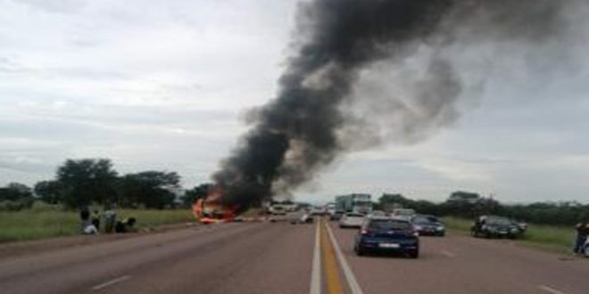 وقالت وزارة النقل وسلامة المجتمع الجنوب أفريقية في بيان نقلته وسائل إعلام محلية إن الحادث وقع في مدينة ليمبوبو ونجم عن فقدان سائق سيارة السيطرة عليها بسبب انفجار أحد إطارتها حيث اصطدمت بحافلة تقل 22 راكباً ما أدى لوقوع هذا العدد من الضحايا.