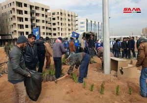 وبالتوازي مع أعمال التأهيل انطلقت اليوم في الموقع ذاته حملة تشجير تشمل زراعة نحو ألفي غرسة شاركت فيها فعاليات أهلية ورسمية.