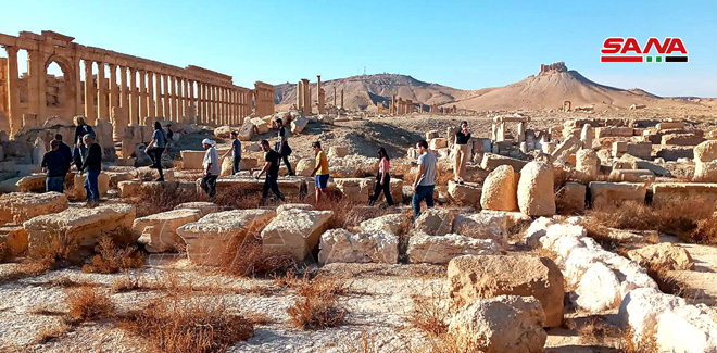 مجموعة سياحية من جنسيات مختلفة في تدمر توثق جرائم الإرهابيين بحق الأوابد الأثرية 8-1-2022