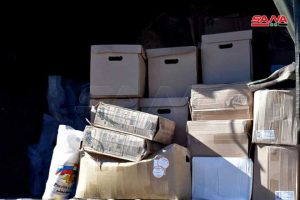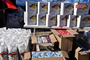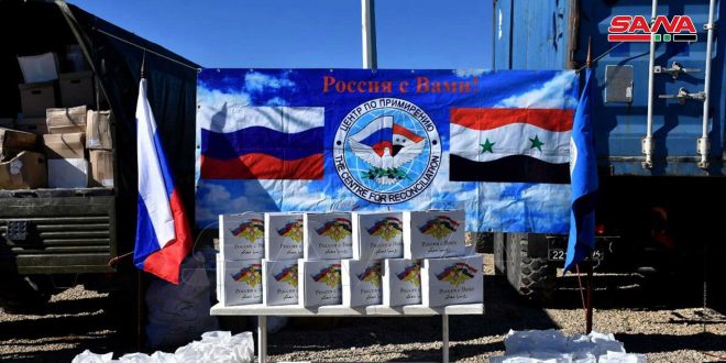 وزع اليوم مركز التنسيق الروسي 5 أطنان من المساعدات الإنسانية ضمت مجموعة من السلل الغذائية والألبسة وهدايا الأطفال للمهجرين المقيمين في مركز التجمع السكاني الموجود في بلدة حسياء بريف حمص.