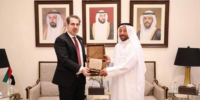 كما جرى خلال اللقاء بحث سبل تفعيل التعاون الاقتصادي المشترك وتنشيط التواصل بين رجال الأعمال في كلا البلدين وعمل مجلس رجال الأعمال المشترك السوري-الإماراتي الذي أعيد تفعيله مؤخراً وسبل تعزيز الصادرات السورية ولا سيما المنتجات الزراعية والغذائية السورية والترويج لها في السوق الإماراتية.