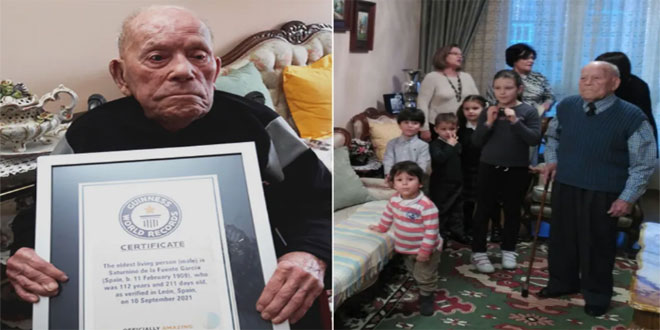 ونقلت وكالة فرانس برس عن موسوعة غينيس للأرقام القياسية قولها اليوم إن الإسباني غارسيا المولود في بوينتي كاسترو في الـ 11 من شباط 1909 سبق وأن صنف أكبر إنسان سناً في العالم بسن 112 عاماً و211 يوماً.