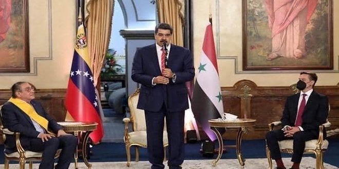 أعلن الرئيس الفنزويلي نيكولاس مادورو أنه سيزور سورية قريباً للاحتفال مع الشعب السوري وقيادته بجو السلام والاستقرار الذي تمكنت من الوصول إليه بعد مواجهة العدوان الإرهابي عليها.