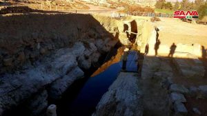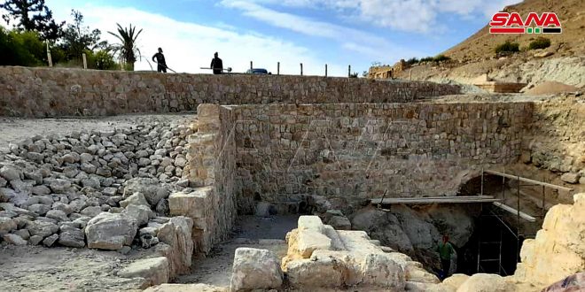 شارفت أعمال ترميم وتأهيل نبع أفقا التاريخي في مدينة تدمر على الانتهاء.
