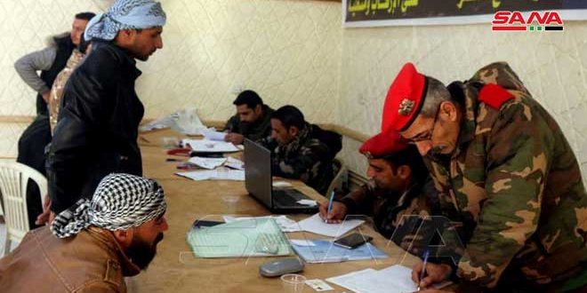 تواصلت عملية التسوية الشاملة في مركزي التسوية بمدينة دير الزور وفي السبخة بريف الرقة الشرقي والتي تشمل المدنيين المطلوبين والعسكريين الفارين والمتخلفين عن الخدمتين الإلزامية والاحتياطية.