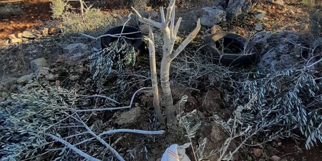 اعتدى مستوطنون اسرائيليون اليوم على أراضي الفلسطينيين في سلفيت بالضفة الغربية واقتلعوا عشرات أشجار الزيتون.