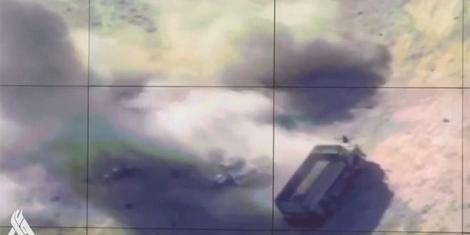 ونقلت وكالة الأنباء العراقية (واع) عن خلية الإعلام الأمني العراقية قولها في بيان اليوم” إنه من خلال المتابعة الميدانية وتكثيف الجهود الاستخبارية تم رصد ومتابعة متزعمين اثنين من عصابات (داعش) الإرهابية أحدهما شغل منصب ما يسمى مسؤول قاطع دجلة” وكانا يستقلان سيارة نوع بيك أب ويرتديان حزامين ناسفين وبصحبتهما إرهابي ثالث، مضيفة” أنه وجهت لهم ضربة جوية دقيقة جنوب الحضر في قاطع الجزيرة بين قضائي بيجي والحويجة ما أدى إلى تدمير السيارة بالكامل ومقتل من كان بداخلها”.