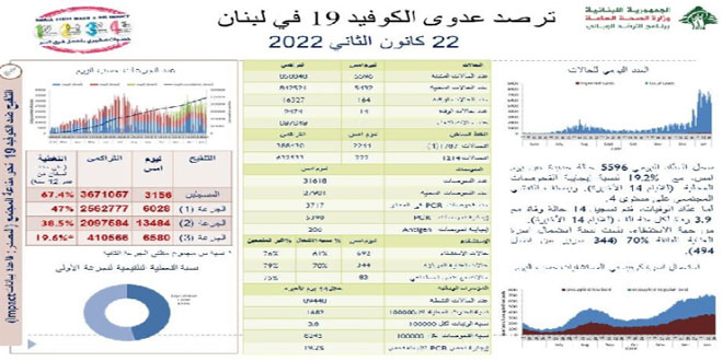 سجلت وزارة الصحة اللبنانية 5596 إصابة جديدة بفيروس كورونا و14 وفاة ناجمة عنه خلال الساعات الأربع والعشرين الماضية.